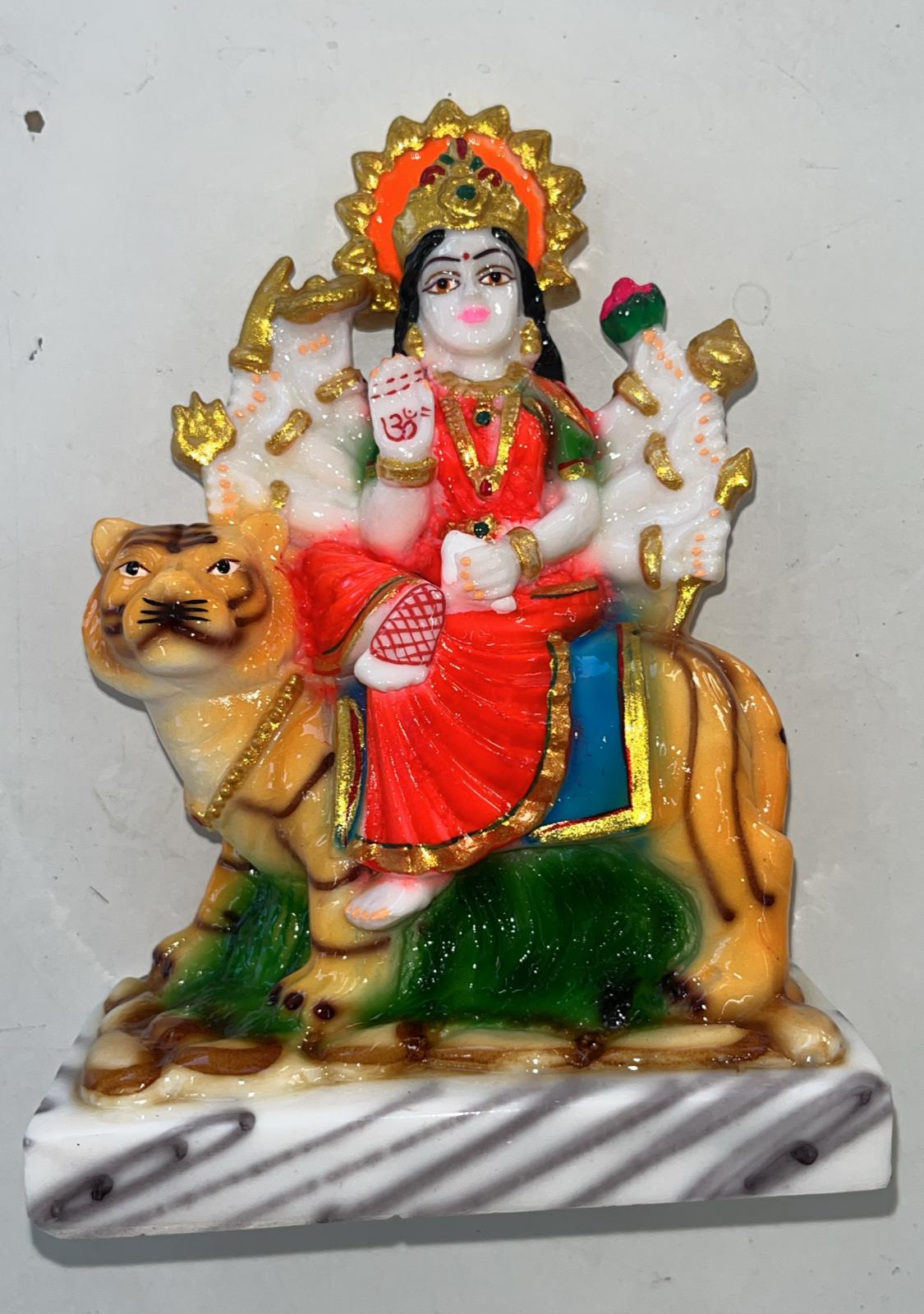 Invoke strength, protection, and devotion with this beautifully crafted Durga idol. Standing at 6 inches tall, this compact yet powerful statue is perfect for home temples, car dashboards, or gifting during auspicious occasions.