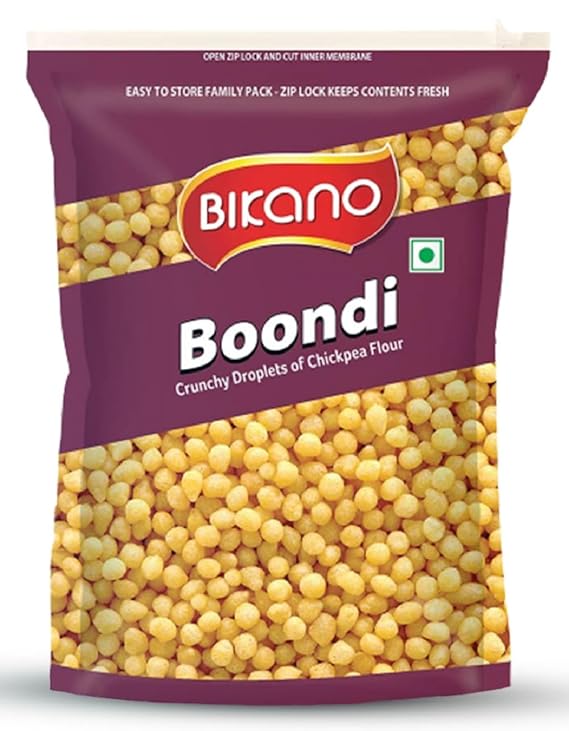 Boondi is crispy, fried & salted tiny round balls with flavour of the mint and made of gram flour. It is famous for its different uses. It is usually served during a meal in summers along with curd as “Raita”.